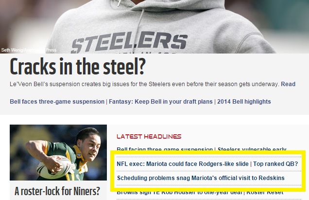 4.9.15 Posted by The BEAST on 2015/04/09 This is an image for IS MARIOTA SLIDING TO THE EAGLES?. Images navigation