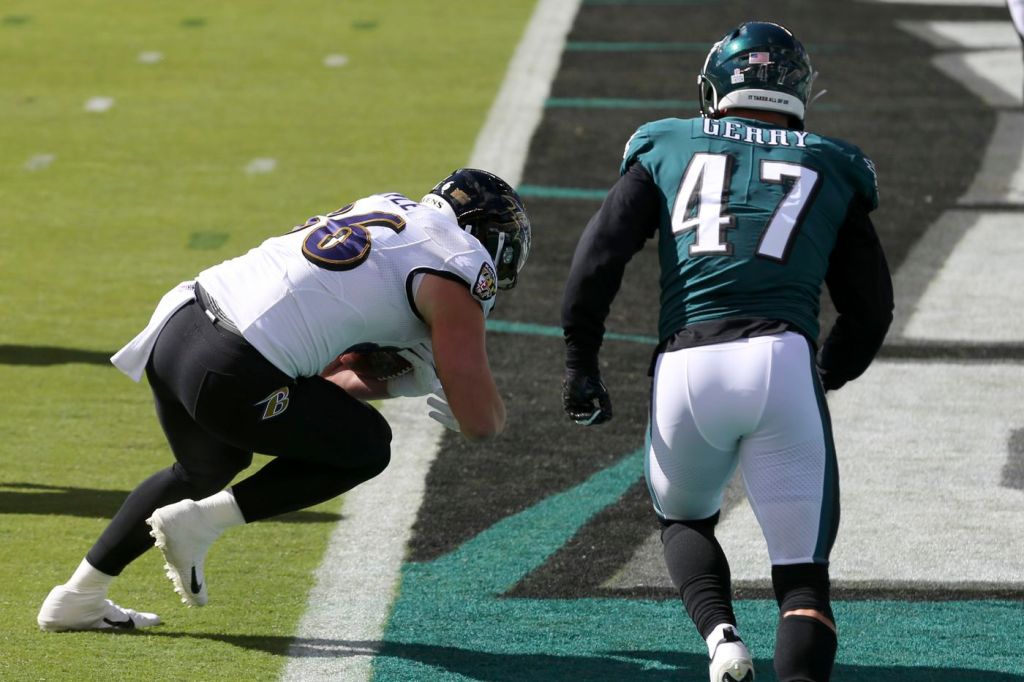 2) Stay disciplined: Outside of their QB, the Ravens ran for 74 yards on 28 carries (2.6 ypc). The Eagles Defensive line did great job of setting the edges, and pursuing runners. While the Ravens did make a few plays (on 37 total carries) our defensive discipline was clearly there today. (DONE)