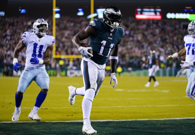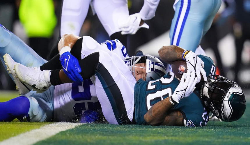 The idea was to use TE Dallas Goedert (5 – 2 – 22 – 11.0 – 0) to either force Parsons into coverage, or beat him with short passes. Well, using more than just Goedert, we did both. Parsons had a couple of hurries once RT Lane Johnson left the game with a concussion, but he had no sacks, and he was beaten by A.J. Brown for a 15 yard touchdown. (DONE)