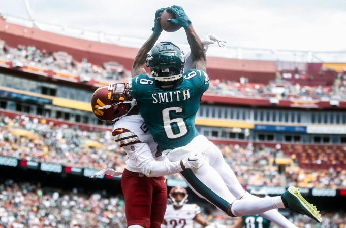 4) Devonta De Decoy: Earlier this season WR Devonta Smith lit the Commanders secondary on fire for 8 grabs, for 169 yards, including this crazy, 45 yard, ladder climb.