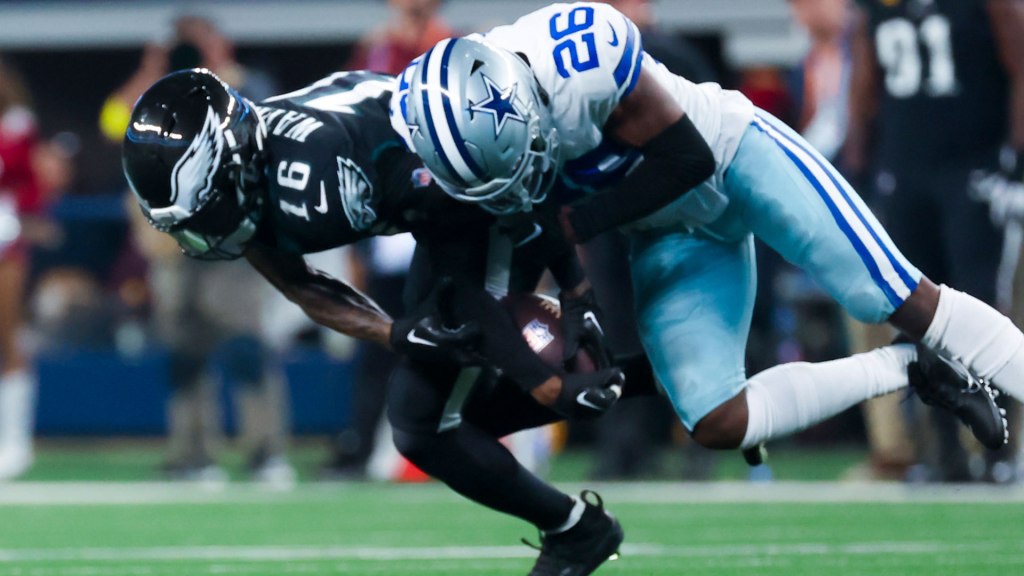 FIRST! That interception by Josh Sweat was a amazing. The last time I saw a play like that, I was making it at age 15. It was just street ball. No pads. I’ve never seen that play made in pads, and couldn’t believe it when I saw it. The degree of difficulty to make that play in pads… I need to give Sweat props, before going into the postmortem.