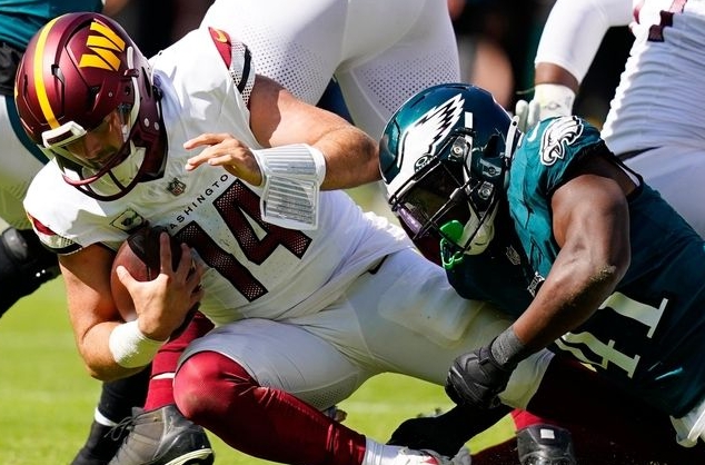 CB: Darius Slay (25 – 0 – 1 – 0) has already had a pick six and knocked down 4 passes. He’ll miss Week Six with a knee injury. James Bradberry (14 – 0 – 0 – 1) had to sit out Week Two, and when he returned, he spent time filling in at NCB. Avonte Maddox (6 tackles) was lost for the season with a torn pectoral muscle. When Bradberry filled in for Maddox, Josh Jobe (13 – 0 – 0 – 0) started in Bradberry’s place, and didn’t fare to well with the extended snaps. Mario Goodrich (5 tackles) has allowed QB’s to go 10/10 for 118 yards and TD. He started Week Five, but only saw 18 snaps in that game. Kelee Ringo and Eli Ricks have 2 tackles each, in limited action. Bradley Roby (1 tackle) was just signed last week. (Grade: C)