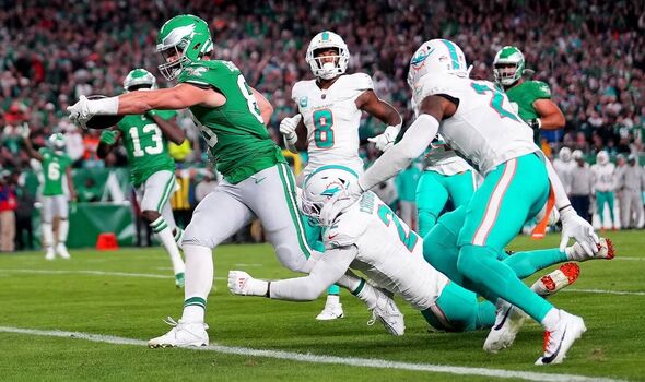 Once Goedert became a threat, and since we stuck to the run, it let A.J. Brown run his routes easier, essentially headhunting. When Hurts hit Brown with that 42 strike in the fourth quarter, that was basically the knockout punch; leaving Miami to search for the softest part of the mat to land on. So no uppercut, but still a great tactic. (NOT DONE)