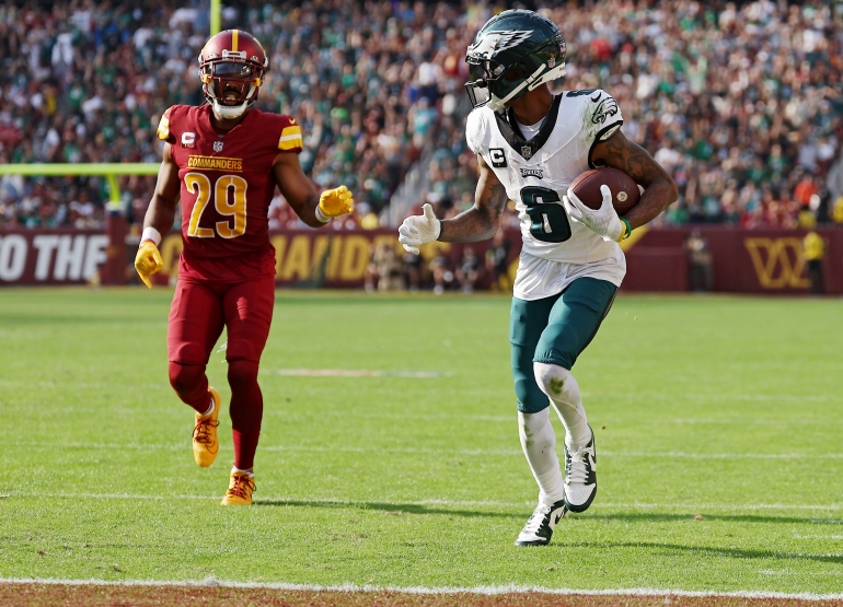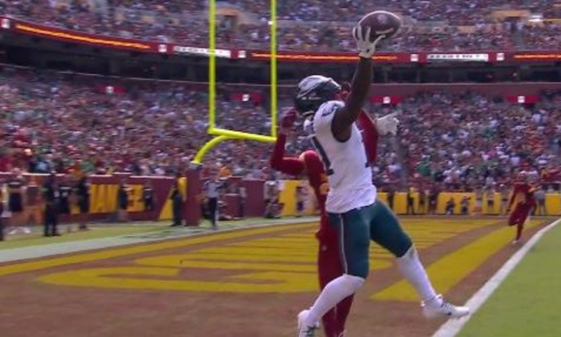 Special Teams Ace: Hands Devonta Smith recovers Commanders onside kick attempt