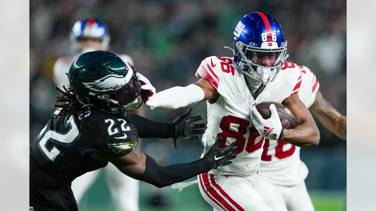 4) Passes On the Rusher: Playing a 4 – 2 – 5 alignment, allowed the giants to move OLB Kayvon Thibodeaux (no stats) around. Assigning a receiver to settle into his rush wake, was the hope. That was rarely possible. Still, when given the opportunity, the Eagles did not shift to take advantage of this. (NOT DONE)