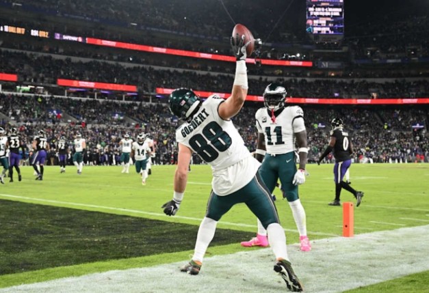 2) Unleash Goedert: We came out and punted FOUR TIMES, before Jalen Hurts attempted a pass to TE Dallas Goedert (4 – 3 – 35 – 11.6 – 1). It was good for a 17 yard touchdown and the Offense opened up from there. That pass didn’t happen until Goedert collided with the Ravens star S, who then had to be checked for a concussion.