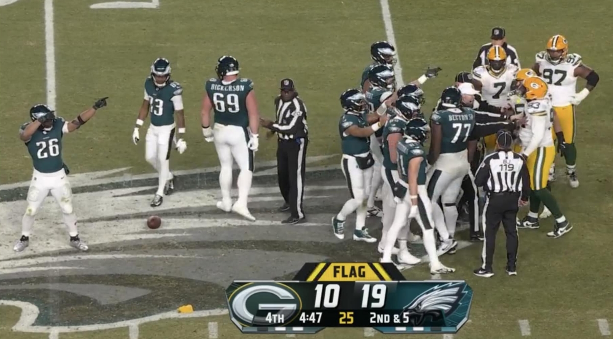 One of the best parts of the game, was after Packer defensive lineman threw Saquon to the ground after whistle had blown the play dead. Though the Eagles were getting the first down, it didn’t stop the Offense, including Hurts, from getting into the face of the offending player. Good to see.