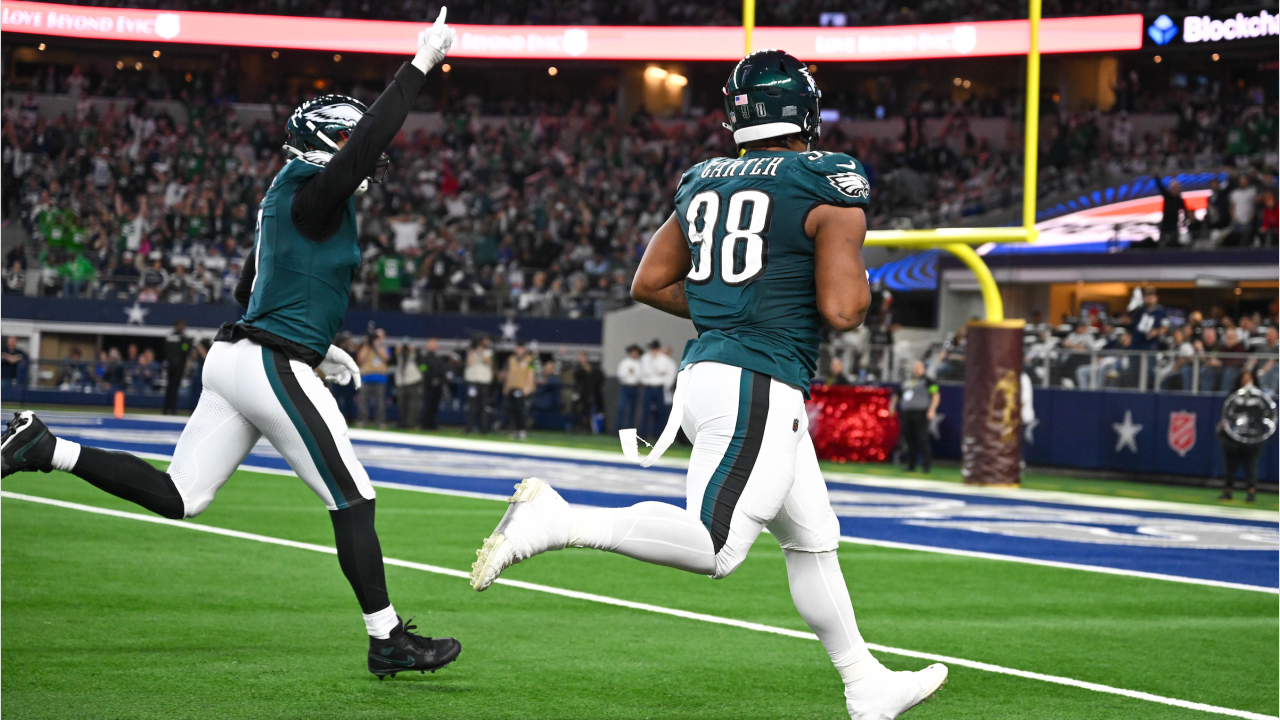 Rookie DT Jalen Carter recovers fumble forced by DT Fletcher Cox, and takes it back for SIX!