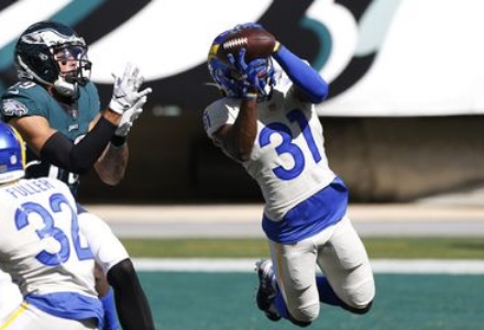 Then, as if flipping a switch, Jalen Hurts threw Geodert a touchdown. The Rams punted, and Hurts throws Brown a touchdown. Suddenly were down by five points. They go out on downs. We go out on downs. Then DT Jalen Carter (3 tackles) blocks a FG! Are you serious!? Hurts throws WR DeVonta Smith (9 – 8 – 60 – 7.5 – 1) a touchdown, and for the first time since the first quarter, we have the lead!