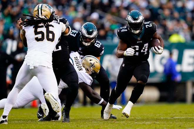 Rushing: (S ) RB Boston Scott (14 – 47 – 3.3 – 2 – 0)